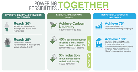 Boosted efforts for supplier engagement, resulting in higher response rate of 78% for Conflict Minerals campaign as part of Responsible Sourcing and exceeding the 2026 goal of 75% ahead of schedule.